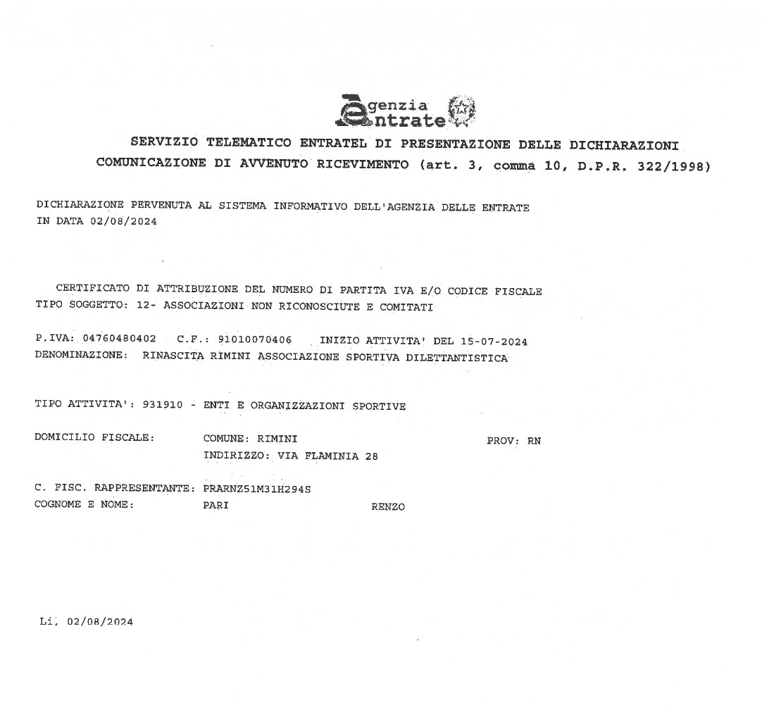 - Rinascita Rimini asd verbale e statuto registrati 07.05.2025